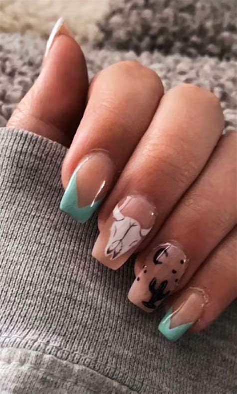 - Watercolor western nail sq.: Use watercolor paints to create a delicate and ethereal western-inspired design.